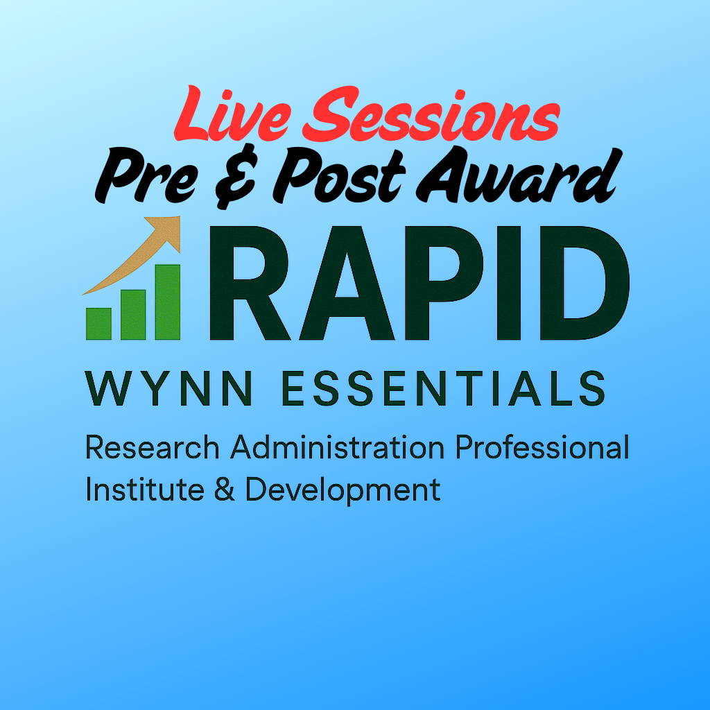 RAPID is a 9-session course with 90-minute live virtual sessions that goes beyond checklists and compliance—focusing on the why behind research administration and the purpose driving each process. From proposal development to post-award management, each session unpacks the purpose and impact behind the processes. You'll explore how research administrators serve as the bridge between innovation and accountability, ensuring integrity, stewardship, and institutional success. Recordings are available in the event you are unable to attend any session.